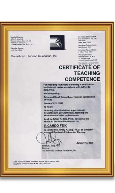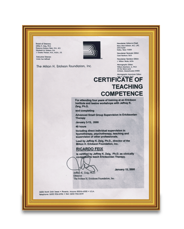 Especialista em Hipnose Clínica e Ericksoniana com formação internacional