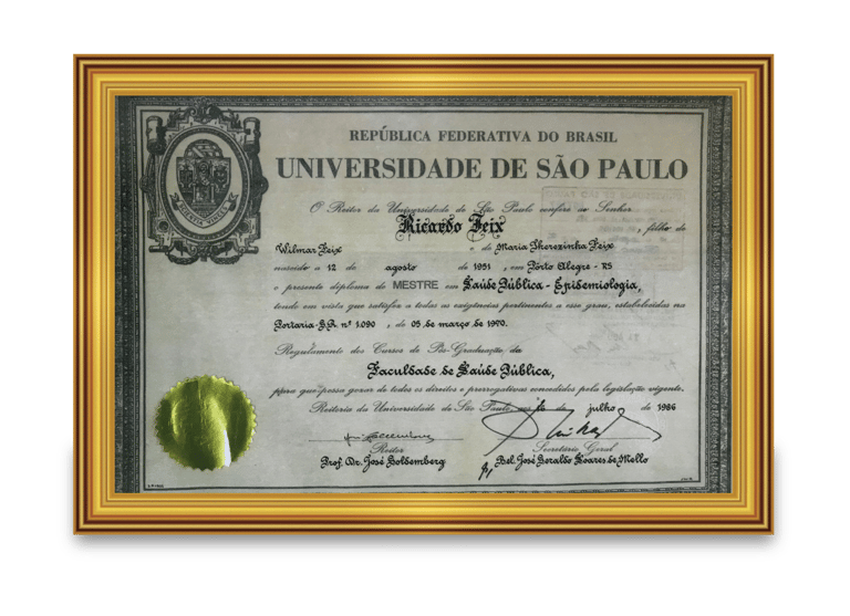 ✅ Mestrado em Saúde Pública pela USP SP 1985